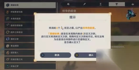 2、使用方法 玩家在圣言自明机中,可以消耗4个祝圣之霜来定轨圣遗物的词条,定轨之后,玩家获取被定轨的圣遗物都会带有定轨的词条。