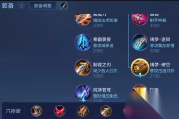 二、出装推荐 1、开局先出布甲,布甲可以提升艾琳和其他射手的对线能力。 2、然后出速击之枪,出完这个装备后,就买攻速鞋。 3、鞋子买完后出影刃和无尽,建议玩家再出个制裁。 4、制裁出了以后把鞋子换法穿鞋,中期穿法穿鞋,攻速鞋用来前期过渡。 5、接下来一定要出破晓,不能再出肉装,最后一件装备就比较随意了,可以出逐日,苍穹换复活甲都可以。