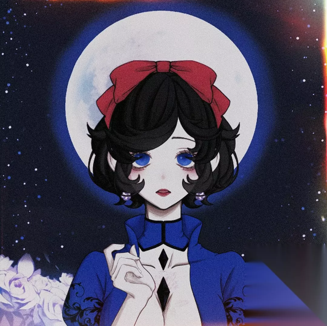 (后期是加了点滤镜特效做了点调整的) 是我按照白雪公主最原始的造型尽力去还原的。 原版↓ 当然也有一些改进(就比如仔细看白雪公主的瞳色应该是棕色被我改成了深蓝色,因为感觉更搭更有灵性) 在迪士尼公主里面我最喜欢的角色应该就是白雪公主了。在我心目中她应该是洁白无瑕,干净纯洁的一个存在(请不要说那些搞扯的暗黑童话谢谢,不是一个主题),而且她的后妈对她并不好,所以我给她加的饰品应该就除了原本的蝴蝶结的一对耳环和胸前的玫瑰纹(被滤镜淡化了,仔细看,很浅的粉色) 背景的话是圆月白玫瑰和远处的城堡(城堡被白雪挡住了),应该就象征着一种高洁清高,和最后的结局是王子娶了白雪(说实话我觉得王子不配) 然后是后妈——