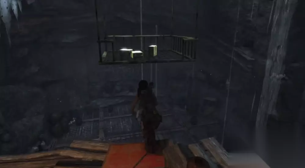 进入场景后,玩家可以找到数个类似油桶或箱子的重物,需要将其中三个扔进中央升降吊台的铁框内。增加重量会使吊台逐渐下降至底部,此时玩家应抓住时机跳上吊台。站在吊台上之后,需要立即扔掉一部分重物以减轻其承载的重量,这一操作为后续的跳跃创造了必要的条件,因为减轻重量后吊台会开始上升。