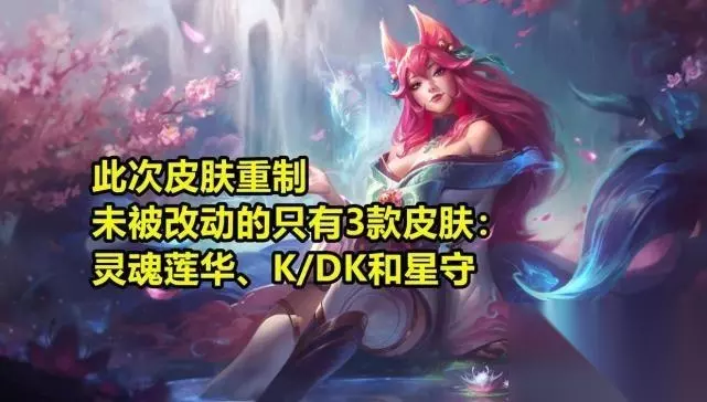 灵魂莲华阿狸 无改动:灵魂莲华、K/DA阿狸和星之守护者 细微调整:魅惑之月、高丽风情、魔女、电玩阿狸、风纪委员 大型改动:暗影妖狐、偶像歌手、勇者阿狸、焰尾妖狐