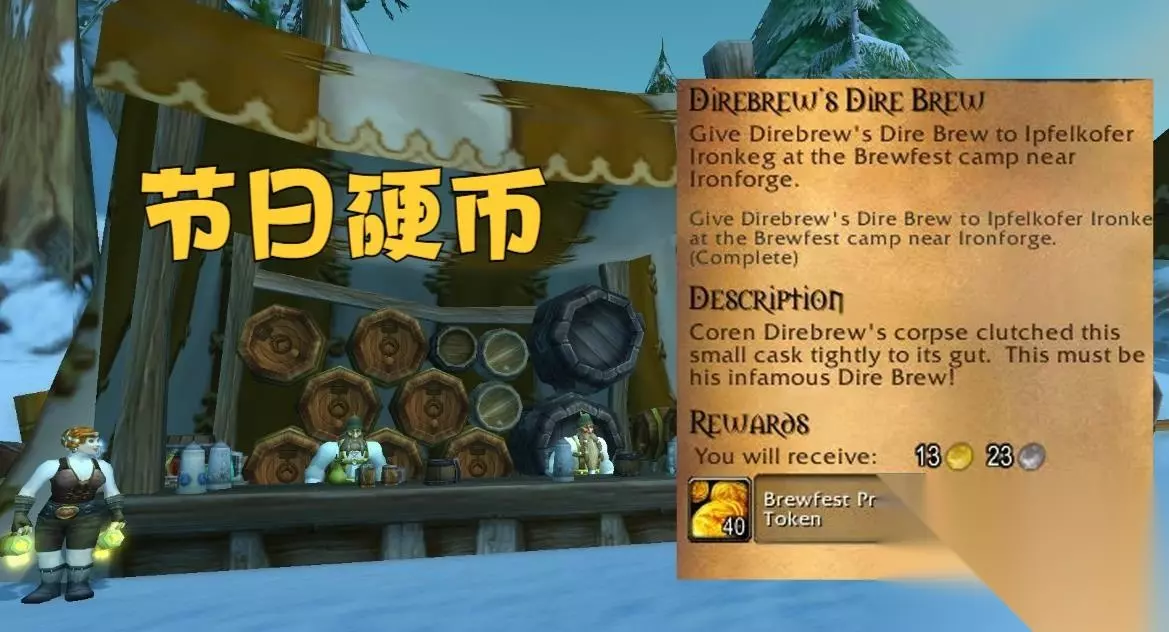 节日硬币的获取方法有两个,第一个是领取节日期间的单次任务(包含一个击杀BOSS任务),四个任务加在一起可以获得100个节日硬币。第二个是通过每天的节日日常任务获得硬币,每天可以获得25个,连续做4天日常任务就可以了。 获得200个硬币之后就可以完成任务了,然后按照任务指引就可以加入美酒节俱乐部,同时也完成了本月美酒成就。