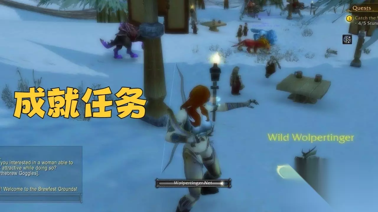 第六个成就是你的小飞兔丢了吗?这个成就需要玩家在活动营地接取一个名为《抓住鹿角小飞兔》的任务。具体完成方法是先把自己喝醉,然后带上任务给予的护目镜,就可以看到小飞兔了。