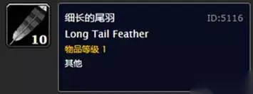 细长的尾羽 三、细长的尾羽:直接卖给NPC价格3.3银币。 不但放拍卖行里边卖不上高价,而且手续费还很贵。唯一的用处就是制皮匠用来制作一件20级绿色品质的装备——制作造弓师手套,手套的属性还是可以的:加1%远程武器致命一击几率,降低%躲闪几率。一般制皮匠都会做几件这个手套,但是因为制作手套的材料非常便宜,致使手套的价格也就几十银币一件。