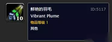 鲜艳的羽毛 五、鲜艳的羽毛:建议卖给NPC价格7.25银币/根,也可以先自己存着。 鲜艳的羽毛就一个作用,暗月马戏团的任务用品,用来刷暗月马戏团前期声望的,因为现在马戏团还没有来,所以现在卖不上很高的价格,拍卖行里很多摆8银币左右1根的,就算是马戏团来了,价格也是不会很高的,倒是可以留着自己用。