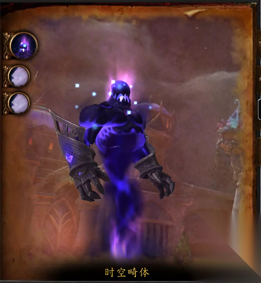 时空畸体 暗夜井底下的洞穴就是原始能量的大漩涡,维持整个文明的能量就源自于此。从这个混乱的能量涡流中诞生的时空畸体是阿曼苏尔之眼力量的化身。它发动攻击的同时,爆发出的能量能扭曲时间的流动。
