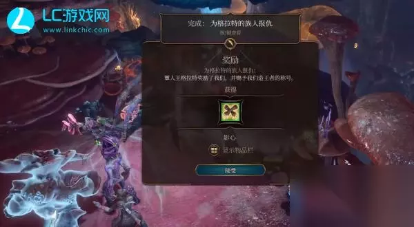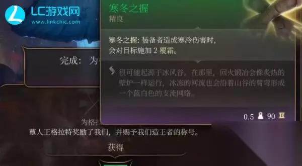 4、击倒取得成功完成后,提醒进行【为格拉特的后裔复仇】每日任务,【蕈人王格拉特】将为玩家发放奖赏,最后的掌握到武器装备【寒冬之握】。