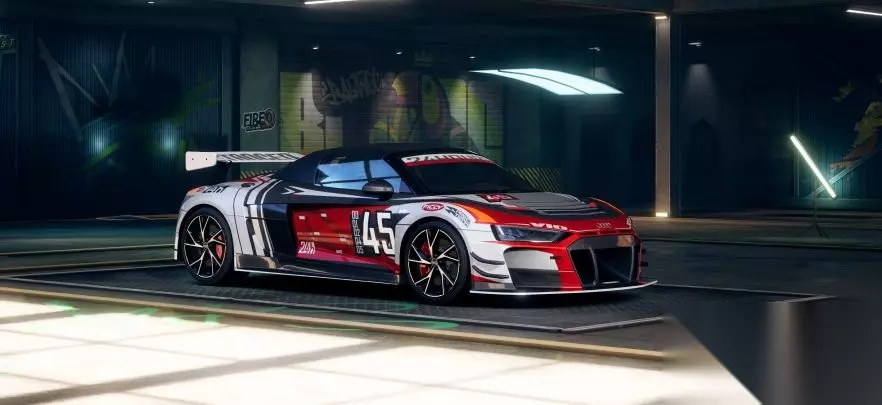 极品飞车:集结 6.7 赛车 开放世界 竞速 引擎盖下,那台5.2升V10发动机尚未苏醒 但灵魂早已开始咆哮 这不是一辆普通的奥迪 R8 Spyder V10 它披上了名为「勒芒魂」的战袍