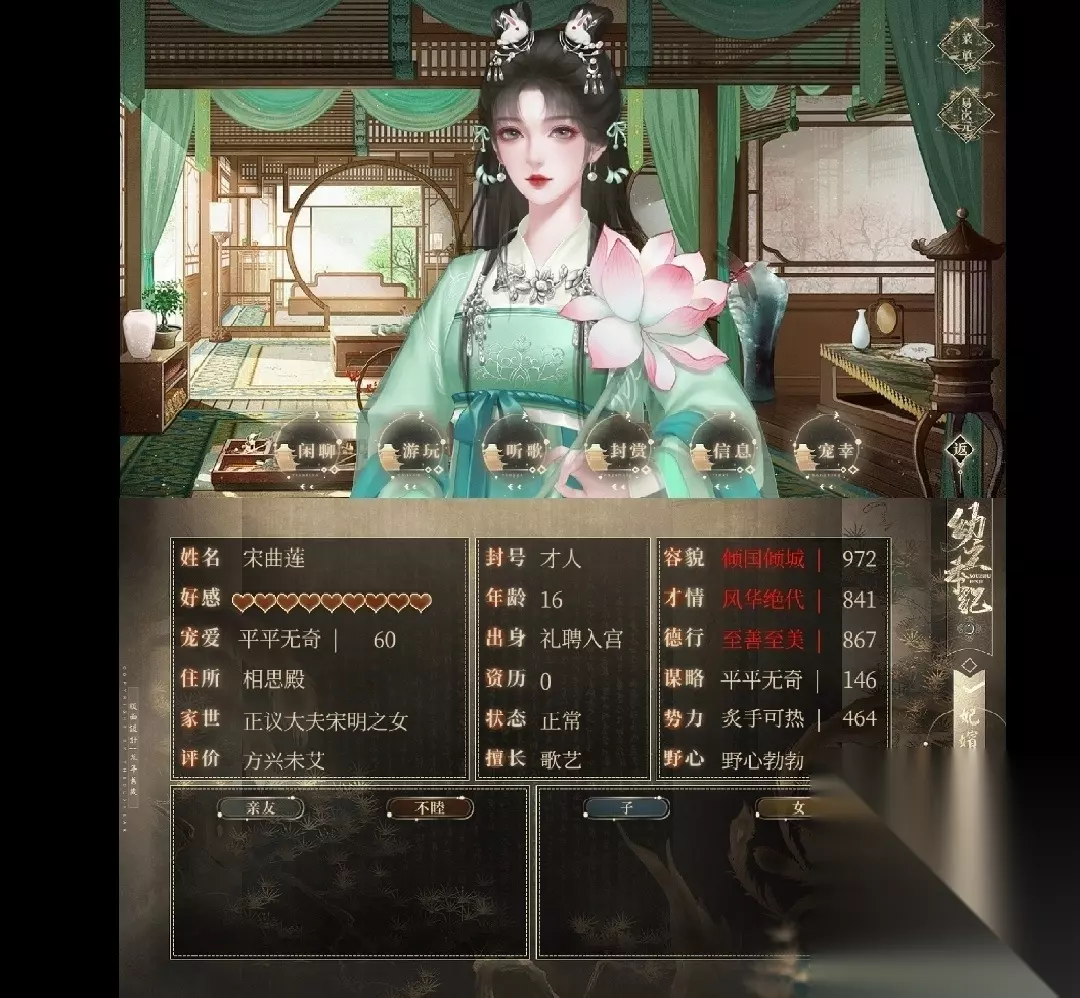 大约8、9颗心和闲聊岑秀说快解脱时概率触发 如何加好感? 怀孕照顾 生病看太医 去她寝宫-游玩-随便点一个(多试) -曼珠