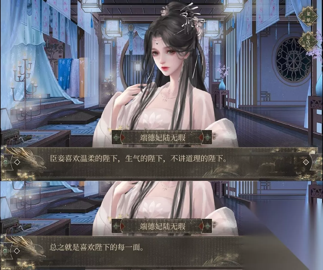 成年线剧情妃 前置条件:皇帝容貌≥950 每年三月午时去宫外芙蓉苑触发(三次,一年一次,可不连续),前两次选择“再看看”触发后续,第三次选择“收下”可收入剧情妃 -陆无暇
