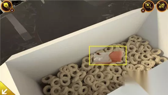 在这一关中,我们首先点击桌上,一开杯子可以得到一个数值“2”,点击得到一个刷子,然后在点击食物盒子