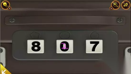 然后点击下图的密码箱,在这里按照我们之前找到的线索,8是五边形的,2是圆形的,另外一个7是圈起来的