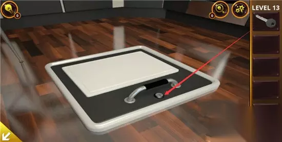 来到厨房的地道口这,使用钥匙将其打开,我们就可以通过这里逃脱了。