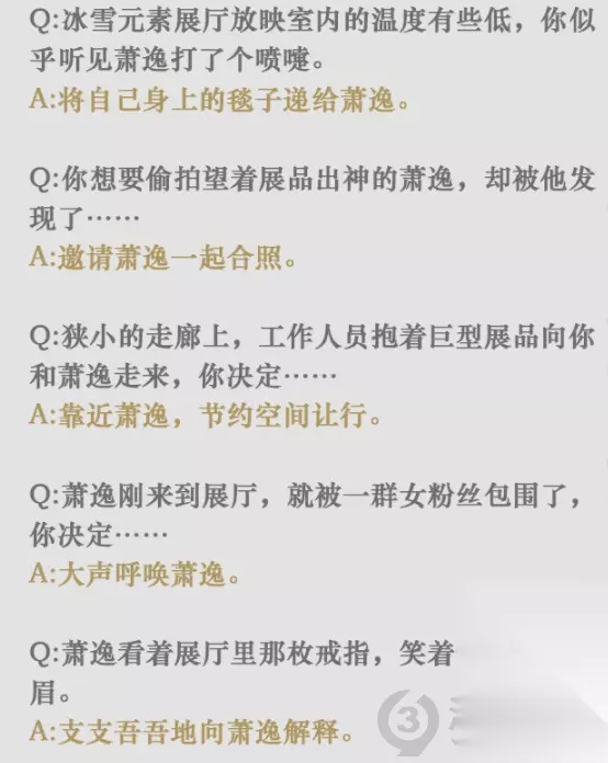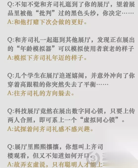 光与夜之恋星光展馆特殊事件答案是什么?展馆特殊事件分为男主和路人问题,男主问题回答最高20小熊星座,其次10小熊,最差只有金币,那么该如何回答才能获得20小熊星座呢?小编给大家带来了光与夜之恋星光展馆特殊事件答案攻略,一起来看看吧。 光与夜之恋星光展馆特殊事件答案是什么 陆沉共五个问题,完美答案如下: