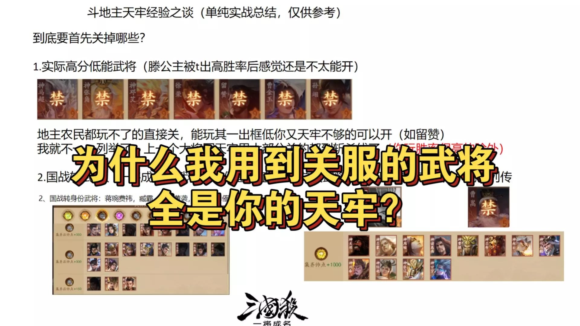 这是三国杀闪闪节相关内容,整理了三国杀斗地主模式里的5分必关武将,包含神话再临、限定专属等包中的武将,还提及老神将无论分数都建议关掉,提供了这类高分低能武将的禁将思路。