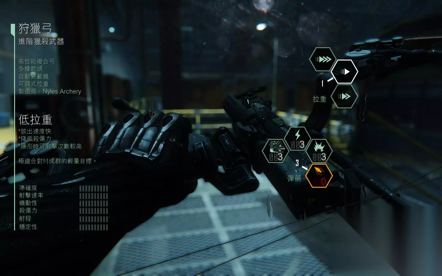 按X可以改造弓箭,可以选择拉弓的强度和不同的箭头,键盘数字键1、3操作; 建议强度选择中等就可以了,第一种强度(高强度)拉弓的时间久,威力大距离远用来远距离狙击的;第二种强度(低强度)拉弓速度快,威力小,但是近距离的敌人是一箭毙命,适合近距离作战,第三种强度(中强度)拉弓速度不快不慢,中远距离一箭毙命,注意普通箭头射出去后是可以回收的,弹药箱是不提供箭头的,所以要手动回收。