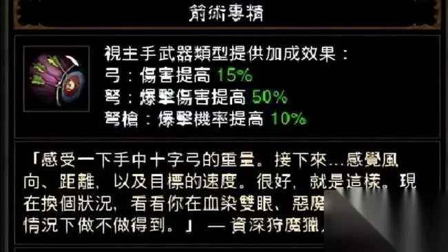 专属属性:专属属性是各个职业专有武器上附带的一种强大的增强属性,大多和本职业的技能资源有关。分别按照下列形式对应:武僧(拳套、武仗):精气凝聚、精气恢复生命野蛮人(重型武器):怒气上限秘法师(魔杖):暴击恢复秘能、秘能上线猎魔(*):戒律上限、憎恨恢复值巫医(祭祀刀):法力恢复在这些专属武器中,暴击无限冰流派的法师对暴击恢复秘能等属性依赖性很大,所以使得魔杖的暴击恢复秘能属性的值要求很高;而巫医由于回蓝的地位十分高,所以常用祭祀刀,回蓝自然成了祭祀刀的一项重要属性;一些武僧也通过堆积精气恢复生命属性而打造一些build,所以拳套上的这个属性也有部分价值。武器速度和职业被动加成: