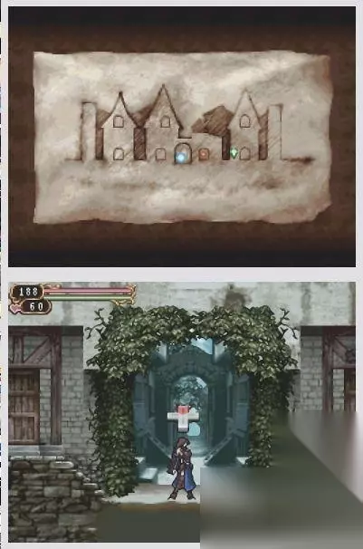 这款游戏是《恶魔城》系列的第三款NDS作品,同时也是该系列中首次以独立女主人公为中心的游戏。女主角隶属于一个神秘组织名为圣教密令,与贝尔蒙特一族的吸血鬼猎人一样,她致力于对抗德拉古拉伯爵。 女主角通过身体上的三个刻印来装备自己,这使她能够发动各种不同的攻击来对抗敌人。这些刻印之间可以相互组合,从而衍生出更多的技能和招数,让她在战斗中变得更加强大。 操作方式: 十字键:移动/方向键上(对话/宝箱内物品拾取/刻印吸收) B键:跳跃/取消 Y键:刻印攻击Y/确定 X键:刻印攻击X A键:/确定 R键:辅助/变身刻印发动R L键:后退回避 ------------------流程攻略---------------------------- 故事开始后,主角SHANOA与师傅BARLOWE在进行接受最强刻印[多米纳丝]的仪式之前,被另一个刻印的适合者ALBUS强行打断了。ALBUS对BARLOWE选择SHANOA而感到不满,因为BARLOWE与ALBUS之间有一个约定,让ALBUS成为接受最强刻印的人。于是ALBUS强行夺走了刻印。 几个星期后,故事继续进行,开始是一个教学关卡。在这里,玩家需要按方向键上来吸收一个刻印[印术的突剑],然后打开菜单进行装备。玩家可以自行设置XY键来发动技能。 普通攻击会消耗MP。按住上方向键加X键可以发动XY的刻印组合技能。玩家可以在这里练习与几个骷髅战斗。之后,师傅BARLOWE要求SHANOA前往废修道院进行救援任务。玩家需要移动到大地图上,然后前往[废修道院]。