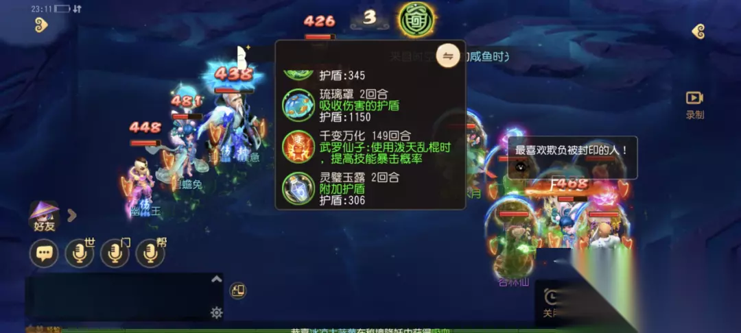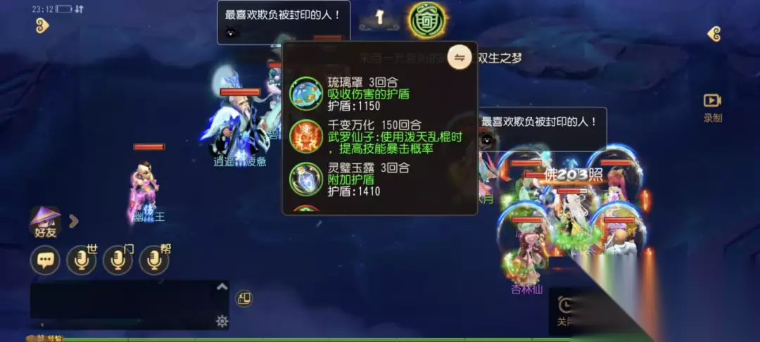 为了帮助大家更好地理解并掌握其使用时机,灵儿收集整理了这两大法宝的实战高光,今天就带大家看看它们是如何左右战局,成为制胜关键的吧! 01、琉璃罩:加盾减伤,防推神器 琉璃罩定位为群体防御型法宝,修炼满级的情况下能在使用后为己方全体人物单位增加等级*10的护盾值,由多位玩家使用的琉璃罩护盾值可以叠加,至多不超过目标气血上限的1/2,在遇上多输出速推队伍时保人效果极佳,有着较相当出色的防御反制能力。 护盾叠加,强力保人 各位少侠听过“速推黄金三回合”的说法吗?意思是速推队能否获胜全看前三回合的表现,相反只要能坚守住阵地保住封系辅助单位获胜的便是防守方。而琉璃罩就是常规队伍挺过头几回合的防守神器! 在本场战斗中,观战方遭遇多狮驼岭多超级神鸡的突袭,仅靠纸人、金刚等常规手段依旧难以保住封系单位和辅助单位存活,此刻便是开启多重琉璃罩的最佳时机!