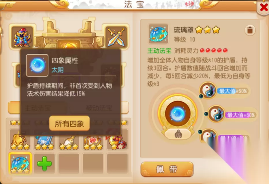 在多重琉璃罩叠加护盾的加持下,不仅化解了对战方狮驼岭暴力鹰击攻势,还成功保住了方寸、普陀两大重点单位,争取到了珍贵的缓冲调整回合,熬过了最艰难的回合,进而走向胜利! 护盾配合,减伤常存 在激活琉璃罩太阳或太阴的四象属性后,来自琉璃罩的护盾耗损殆尽前还将额外减免一定物理法术伤害结果(两仪效果)及非首次受到来自人物单位的物理、法术伤害结果(四象效果)。 并且,在同时拥有不同类型护盾值时,琉璃罩护盾的消耗顺序是靠后的,这意味着可以通过堆叠其他护盾来维持琉璃罩的伤害减免效果。