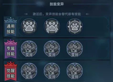 (图片为开发中截图,具体请以正式服上线为准) 技能变异: ①变异培养一定次数后可解锁 ②可对契约兽的通用技能、专属技能以及觉醒技能进行变异(五郎都不敢想,要是概率、层数、持续时间同时提高得有多厉害) ③其中专属技能和觉醒技能变异激活后会替代原来的技能效果 ④每次变更都会消耗材料