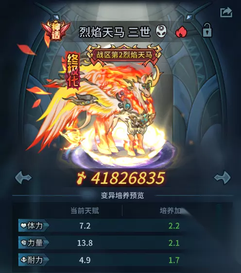 (图片为开发中截图,具体请以正式服上线为准) 变异培养:可通过消耗契约兽精华和巨心对契约兽进行变异培养,可以增加契约兽的天赋点数