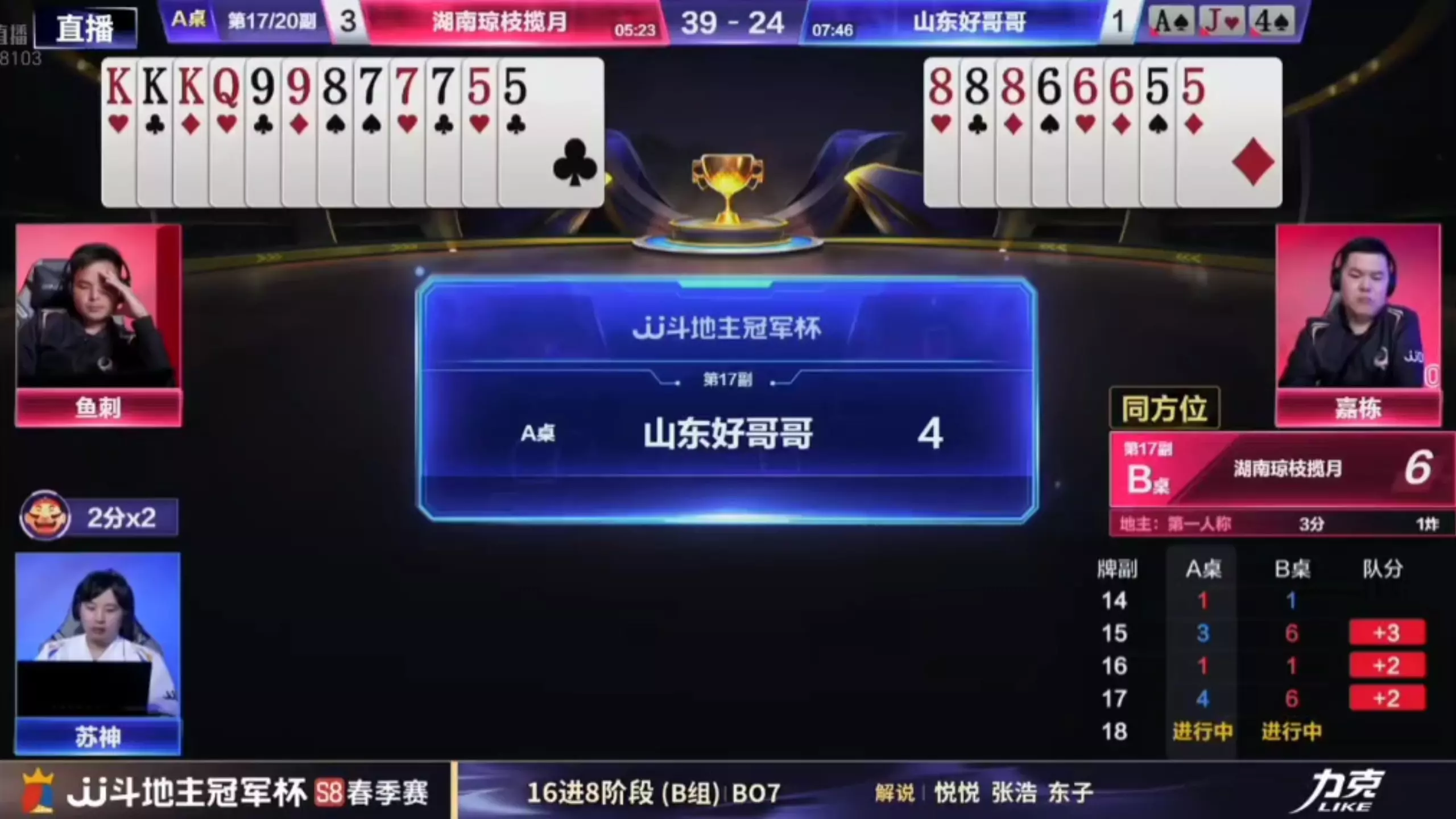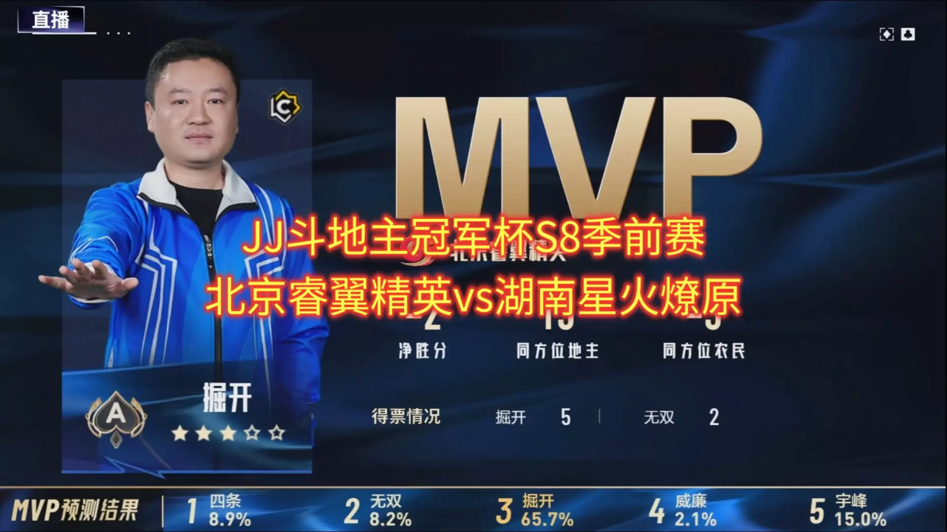JJ斗地主冠军杯S8季前赛北京睿翼精英对阵湖南星火燎原精彩牌局