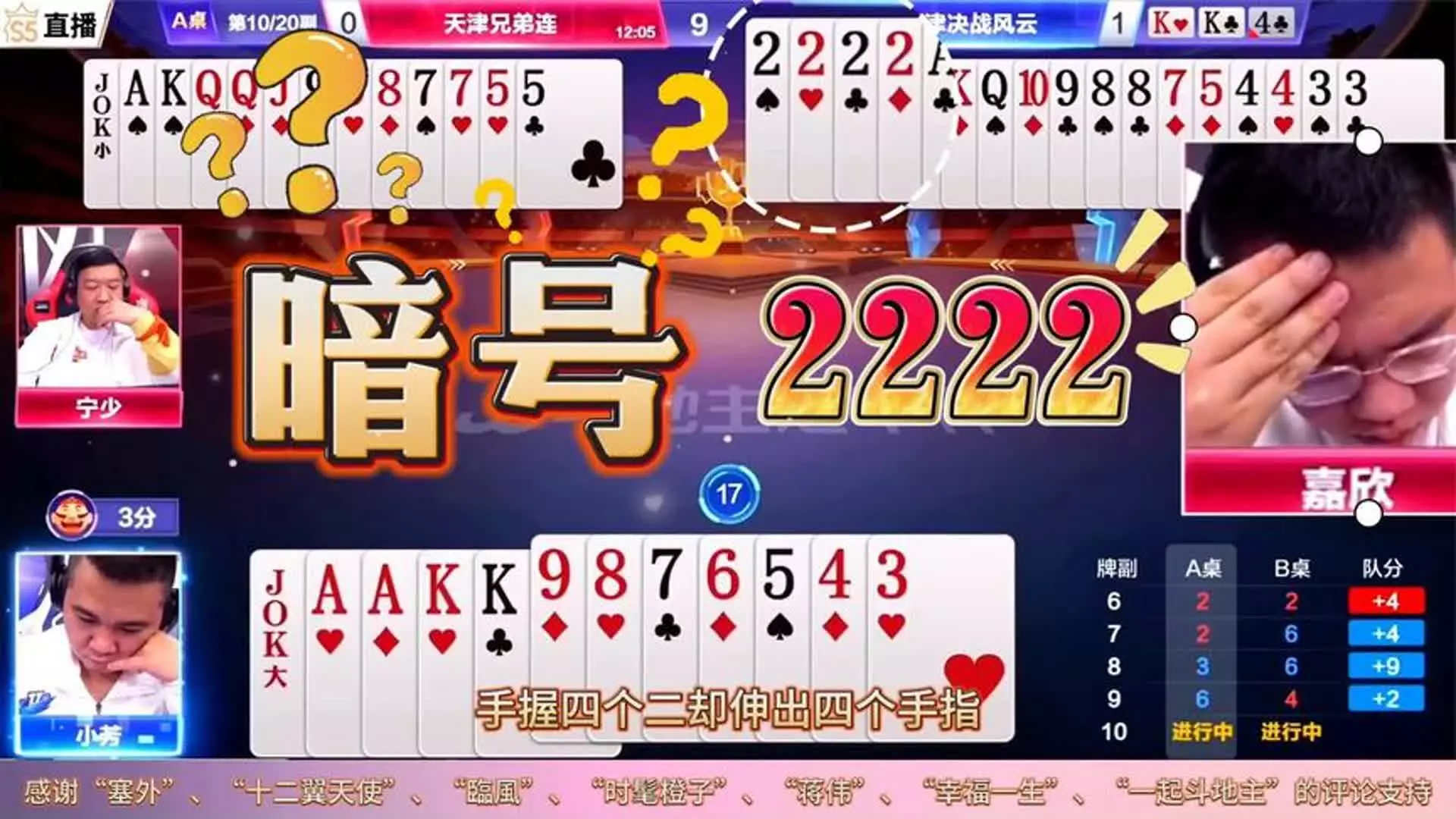 新人速度一手开天眼行牌的四带两对打出了唯一获胜的方式!