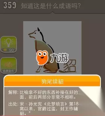 这个疯狂猜成语狗貂答案比较生僻,大家在生活中很少用到,甚至有的机友们根本就没停过,所以猜不出来也很正常,其实这道题的答案是狗尾续貂,看到这个答案再来看看图片其实还是说的过去的,希望小编提供的答案能够帮助到大家,下面有该成语的进一步介绍,感兴趣的朋友可以来了解一下。 【解释】:续:连接。貂:晋代皇帝的侍从官员用作帽子的装饰。貂不够用了拿狗尾巴来顶替,指封官太滥。亦比喻拿不好的东西补接在好的东西后面,前后两部分非常不相称(多指文学作品)。当对自己使用时也带有自谦的含义,表谦虚(多用于日常生活)。 【近义词】:佛头着粪、鱼目混珠 【反义词】:凤头豹尾 【用法】:作主语、谓语、定语;用于书面语;贬义词。当用于自己时,有谦义。 【结构】:主谓式 【同韵词】:文韬武韬、洒洒潇潇、代人捉刀、臼杵之交、枉勘虚招、似漆投胶 【简明释义】:指以坏续好, 前后不相称