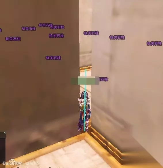 看没看到这两个石柱之间的缝隙?可以穿过去的哦,这也是我标黄线的地方。