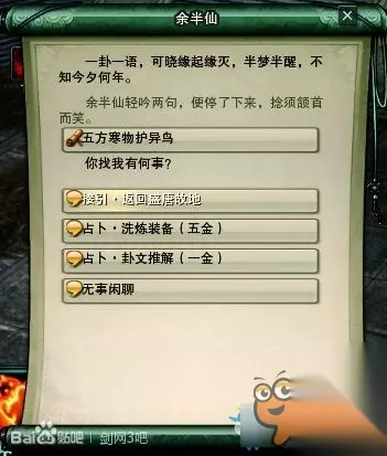 如果没有盒子要怎么办呢? 我们在成都,扬州或者马嵬驿,找到过往场景接引人——余半仙。 与他对话,选择返回盛唐故地,追忆枫华谷的枫红如火。