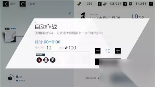 1.首先上线就前往主线的作战关卡,选择一个需要的资源关卡进行【自动作战】,记得将次数拉满到10次。 2.然后去挑战联机和任意日常关卡一次。(活跃度进度:50/100) 第二步