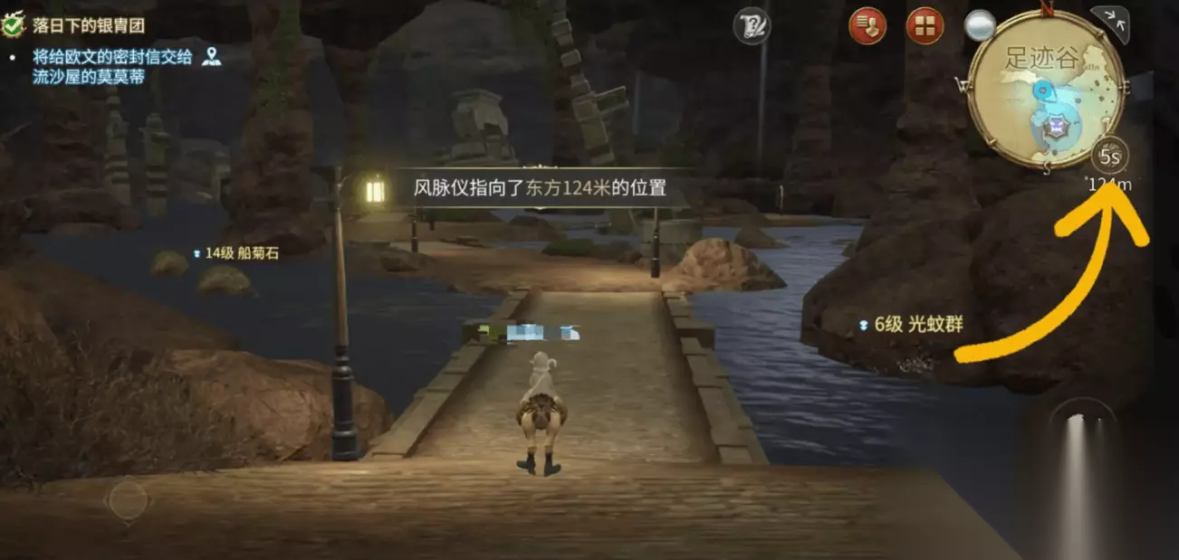 在小于30米时,不仅有明显的绿色光波,还能听到风的声音,这时基本上就能马上风脉泉,最后进行共鸣即可,如果发现很近但却找不到的情况,可能是受到地形或者上下层的阻挡,这时可以试着转动视角,有高处就爬到高处看看。