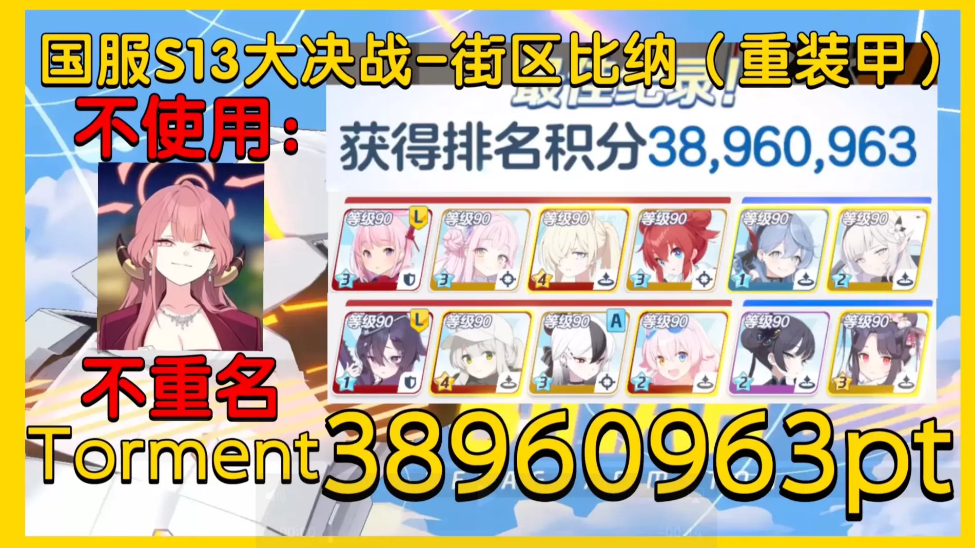 和上期的街区大蛇轴是一模一样的,再发一遍而已,完全批发。第一刀注意一下黄条,基本一把出。第二刀开局记得凹掩体被打爆,严格注意礼佳的释放时间,把游戏局内的学生效果显示打开来。 视频配置(除借人位礼佳25攻击解放,其余学生均无任何能力解放): 第一刀:s3艾米5MM1 全T9 开T2爱用品(活着就行) s3未花5MMM 全T9 s3茜5774 全T9 s3真纪5MMM 全T9 s1亚子5MMM 全T9 s2日鞠5MMM 全T9 第二刀:s3春香1555 全T8 专武40级 三星红薯5M55 全T9 借s3礼佳5MMM 全T9 25攻击解放 s3水星野5MMM 全T9(s1即可) s1春锅5MMM 全T9 s2妃咲5MMM 全T9(可三星)