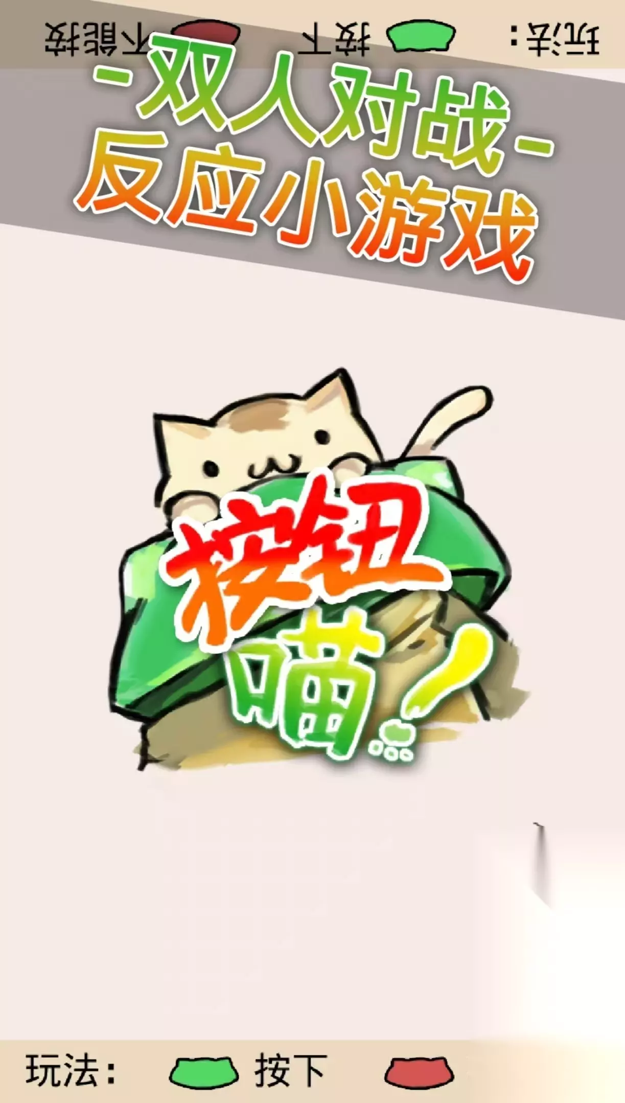 《按钮喵》游戏里面有着简易的画面和规则,需要两个玩家一起在游戏里面对战,两个玩家可以同时进行操作,发现按错的玩家则就会失败,游戏里面的对局时间也比较短暂。源源不断的出现红色或者绿色的按钮,只要看准按钮出现的时机进行点击。拥有着三种完全不同的挑战模式,其中按钮出现的速度会有所不同,挑战的过程中也是非常有趣味性的,非常的考验玩家们的反应能力。 高速下载 普通下载 优先233乐园APP下载 关于喵星人的游戏就介绍到这里了,受欢迎的喵星人游戏都有什么,以后还会带来更多相关的游戏给大家,可爱的猫咪角色会非常的治愈人类,喜欢猫咪的朋友们可以尽情的下载,感兴趣的朋友们可以分享给身边人,体验这些可爱又治愈的游戏吧。