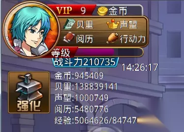 详细信息显示 点击人物图标显示玩家金币,贝里,阅历,声望的具体数值显示,当前服务器时间显示,玩家综合战斗力显示。 增加伙伴各种属性的数值显示。