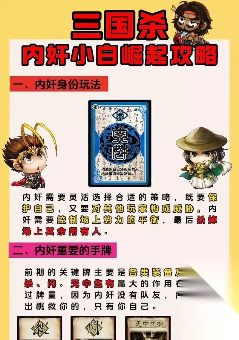 二、角色选择与身份定位 在双人版中,每位玩家在游戏开始前选择一名角色,并获得相应的身份。主、忠、反、内四大身份各有特点: 主公:游戏的最终目标是消灭反贼和内奸,赢得游戏胜利。 忠臣:全力保护主公,共同对抗反贼。 反贼:消灭主公,获得游戏胜利。 内奸:需在保证自身安全的前提下,寻找机会消灭所有对手。
