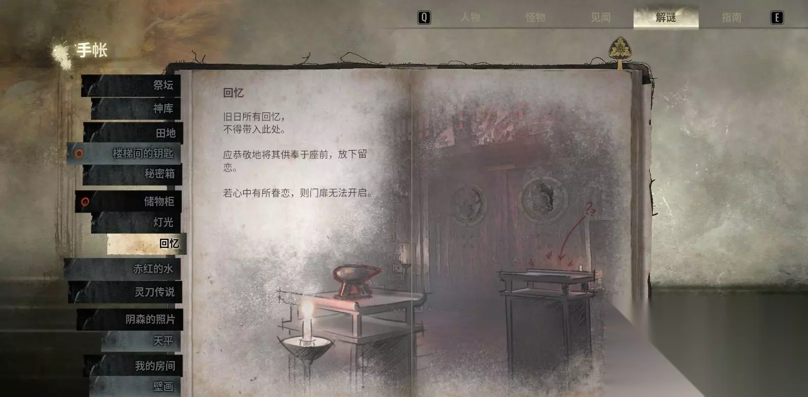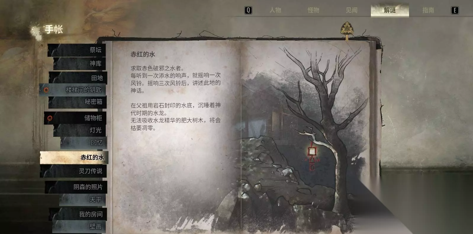 七、二周目专属谜题:正殿 — “赤红的水”(风铃节奏) 此谜题仅在完成一周目后于二周目解锁,是纯时机与节奏型谜题。