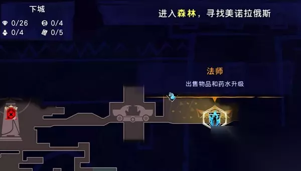 2、玩家前往下城法师所在的位置,法师具有出售物品和药水升级的能力。 3、到达位置后与之交互后选择角蝰确认购买。