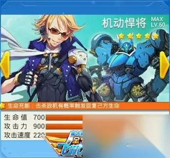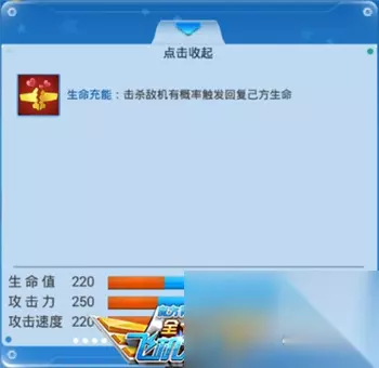 机动悍将技能 生命充能:击杀敌机有概率触发回复己方生命。