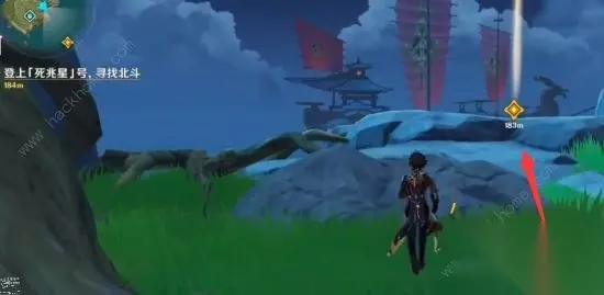 6、一路向黄色任务点的位置移动,然后上船之后找到北斗即可进入剧情。