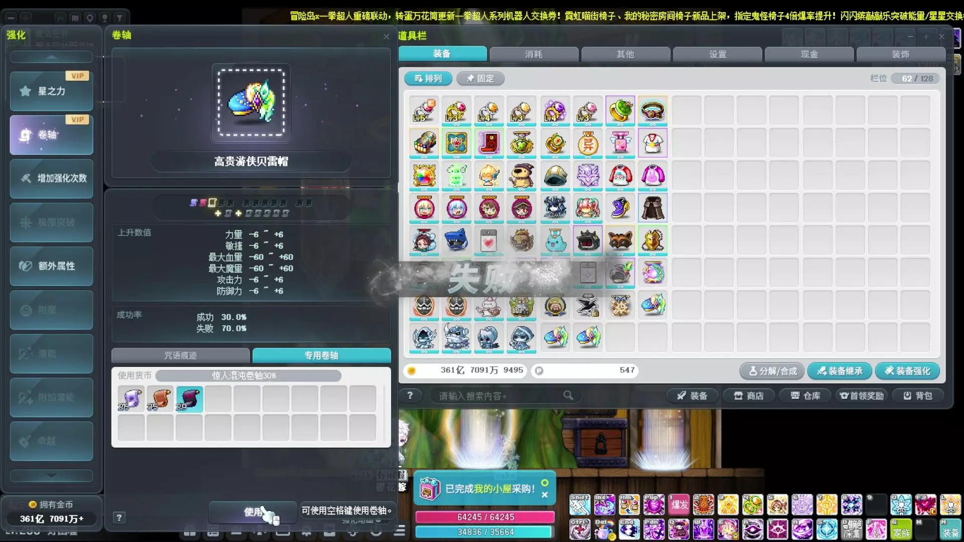 这是一期冒险岛游戏实况,针对萌新和回归玩家,讲解白嫖强化装备的基础方法,介绍了咒语痕迹这类强化材料的获取与使用,还有卷轴强化装备的相关内容,帮助玩家低成本提升装备属性。