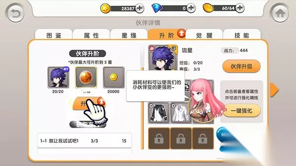 游戏玩法:7.3 进入游戏界面十分简洁,分类清晰。游戏中提供了很丰富的游戏系统,分别为:角色、装备、技能、搭档、好友、坐骑、PVP、时空搜寻、活动副本等。推图是《偷星九月天》的主要玩法,随着玩家等级的提升,各种玩法也随之开启,这其中,包括了角色、装备、技能、搭档、坐骑等养成元素玩法,以及单人和多人PVE以及PVP玩法等等,其中角色系统内是由玩家们自由搭配属性加点的,推图时,玩家们可以搭配伙伴参战。对于时间对碎片化的玩家,《偷星九月天》在副本中还提供自动挂机的功能,三星通关后还可以进行扫荡,十分节省大家的时间。其他玩法还包括晶石系统、秘宝系统以及PVE的征服魔界(刷副本)、PVP的极限火力(4V4大乱斗)、决战波塞冬(单人竞技场)、匹配赛(实时单人竞技场)等多种游戏模式,常规套路下并无什么亮点,不多赘述了。