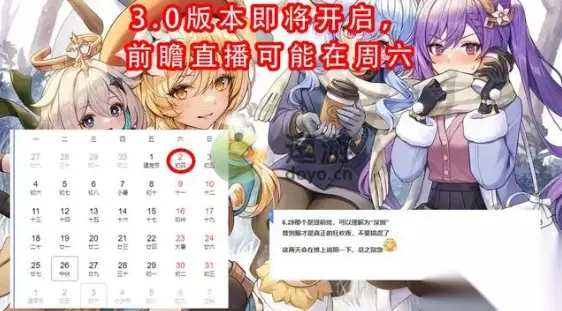 原神3.0版本什么时候更新?随着2.8版本前瞻直播的到来,3.0的版本爆料也是即将开启,下面就给大家介绍一下预计的原神3.0版本时间,可以参考一下哦。 原神3.0版本什么时候上线