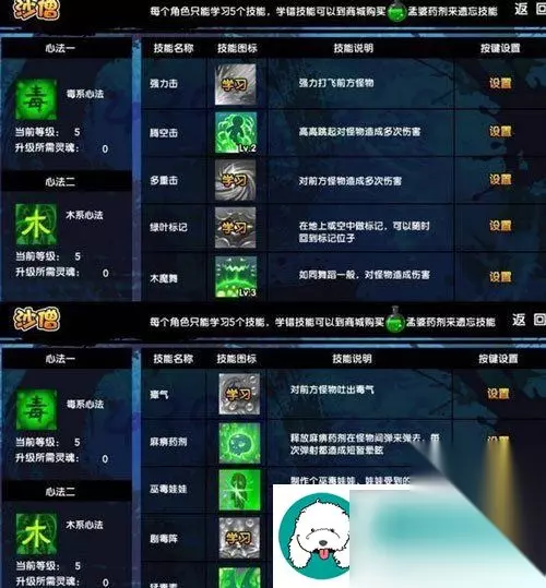 二、技能组合 1、巫毒娃娃:药剂 腾空击 木魔舞 猛毒素 2、综合沙僧:药剂 巫毒娃娃 腾空击 绿叶标记 木魔舞 3、暴力沙僧:巫毒娃娃 腾空击 多重击 绿叶标记 木魔舞 4、推怪沙僧:巫毒娃娃 强力击 腾空击 绿叶标记 木魔舞 5、巫毒娃娃 木魔舞 腾空击 瘴气 绿叶标记 6、巫毒娃娃 木魔舞 腾空击 木叶 多重击 7、巫毒娃娃 剧毒阵 腾空击 多重击 木魔舞