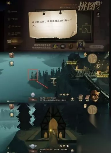 注意:如果去的时候没有,可以等待一会儿刷新,或是看看昨天的拼图有没有做完。 2、前往【城堡上空】,飞向下图箭头所指的方向,找到湖边的小房子,在合适的位置能够发现一个光点,点击即可。 注意:离得太近或太远可能看不见,可以多调整一下自己的位置。人多的话,视角为俯视比较好点。