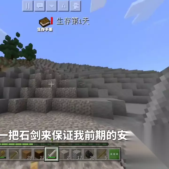 刚才的鳄鱼只是一个小插曲,这个煤炭才是真正的主角。这里还有一个落单的煤炭,挖掉它,还有一个。看来是一对双胞胎。三胞胎、四胞胎、五胞胎。毕竟是惊变100天,我得做一把石剑来保证前期安全。