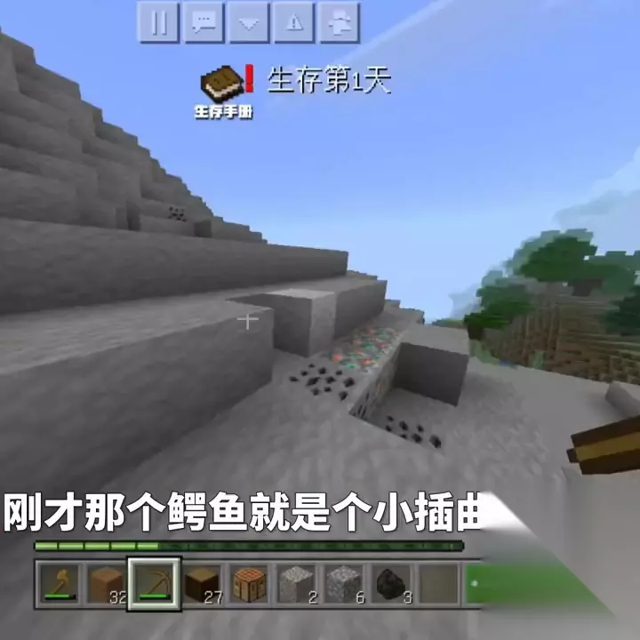 惊变100天(1):僵尸启示录,挖掘和建造是生存的关键。 大家听好了吗?我居然在树上出生,幸好下面没有僵尸,否则我就完了。那句话说得好,想要发财就得先砍树。树非常重要,想要快速砍树,就得准备一把斧头。没有斧头可不行。虽然这只是一把普通的木斧,但它加上了模组自带的连锁功能,使砍树变得更加简单。 这里居然有煤炭,这个出生点还不错。刚开始就发现了煤炭,但有东西攻击我。这是什么鱼?好像是恐龙鳄鱼。幸好它在水里,否则它会上来攻击我。幸好我按下了暂停,忘记它是鳄鱼了。鳄鱼可以上岸。