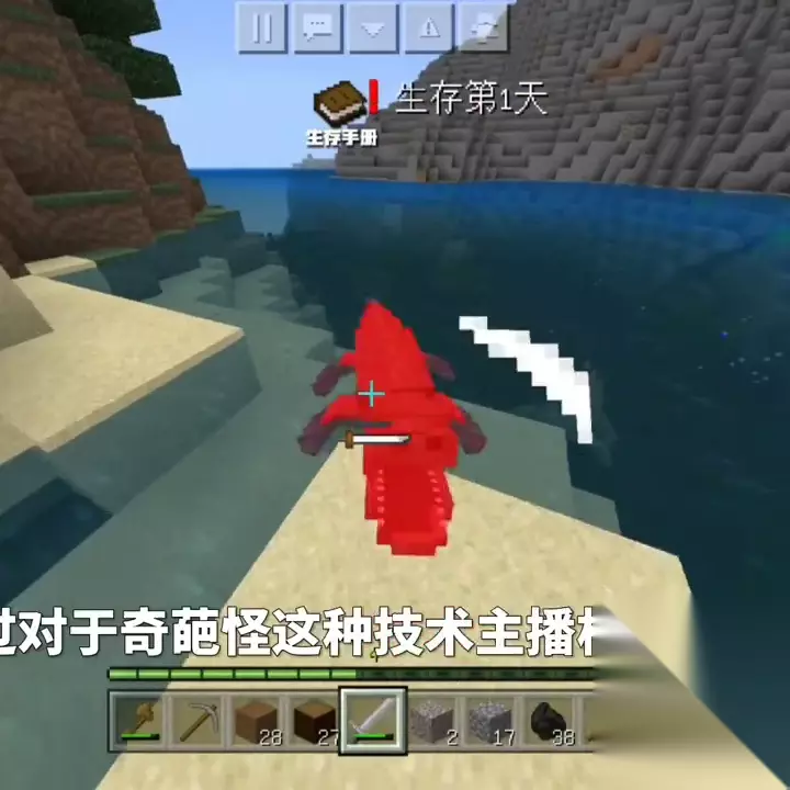 这是什么动物?它没有攻击我。我刚说完它不会攻击我,它就攻击我,太可恶了。天色渐渐暗了下来,海面上出现了怪物向我游来。对于技术主播来说,这不是问题。直接挖三填一保护自己。怕黑?现在不怕了。一直待在这里也不是办法,我决定制作一个吸引怪物的装置,然后在这里给怪物修脚。