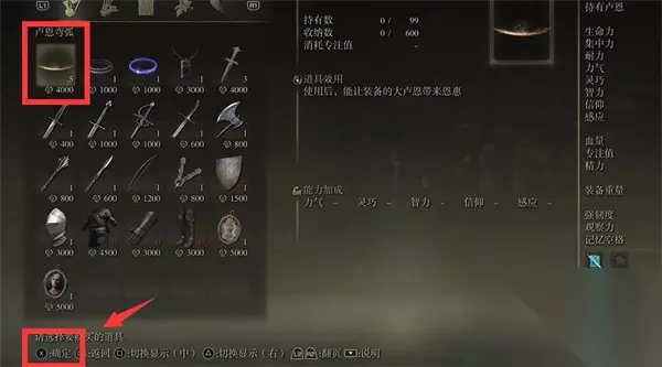 3、在商品列表中选中【卢恩弯弧】,点击下方的【确定】即可购买。